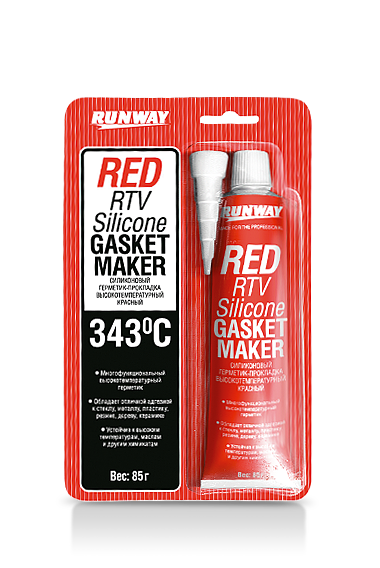 Высокотемпературный силиконовый герметик-прокладка RUNWAY предназначен для быстрого ремонта узлов и агрегатов, работающих в условиях повышенных температур и постоянном контакте со смазочными материалами. Используется для клапанной крышки двигателя, водяной помпы, термостата, дверей и крышки багажника, трубопроводов, глушителя. Герметик прокладка заполняет мельчайшие трещины, обладает хорошей адгезией, эластичностью и упругостью. Герметик устойчив к воздействию атмосферных осадков и химикатов, не подвергается коррозии. Диапазон рабочих температур от -62 до +343°Способы получения заказа